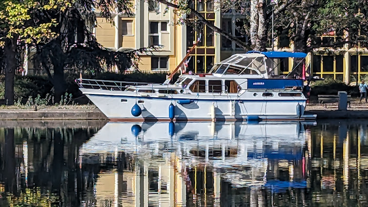 Armida was the perfect boat for us as it turned out. Big enough to be a comfortable home for two, and perefect for the dogs, yet easily maneouvered, and shallow and low enough for all the canals we wanted to do. She was even the perfect size to be single handed, once I had the ideal fender arrangment worked out. We hope someone buys her who appreciates her as much as we have.